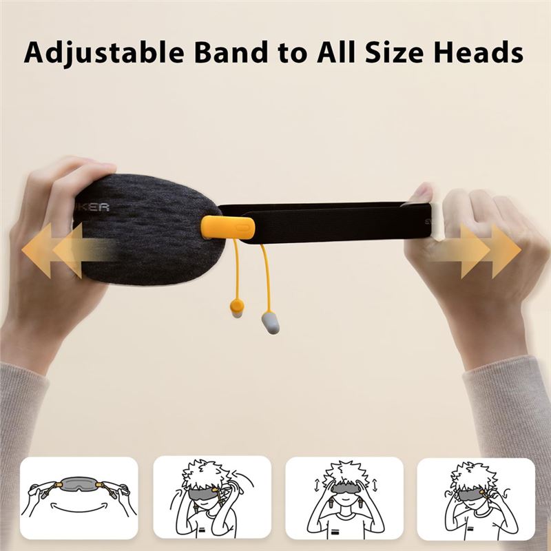 این چشم بند با بند قابل تنظیم، به طور کامل روی سر شما فیکس میشود. طوری که از ورود هرگونه نور به چشمانتان جلوگیری میکند.