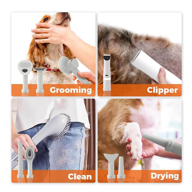 ست آرایش و نظافت حیوانات خانگی GULIGULI SHARK 7-in-1 Pet Grooming Kit & Vacuum & Dryer